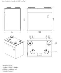 Regulace HMI umožňuje uživatelům dokonalé řízení jednotky a její naprogramování hned v několika režimech. Výkon lze nastavit přesně podle typu domu a rozvodné soustavy. To je velmi důležité nastavení pro dosažení maximálně efektivního provozu. K dispozici jsou funkce zvýšeného odtahu pro rychlé provětrání WC, koupelny nebo kuchyně. Jednotka Combi 400 Top Polar je prakticky bezúdržbová. Jediné co je potřeba sledovat je stav filtrů. Jejichž výměnu doporučujeme zhruba jednou za tři měsíce a jedná se o velmi snadný úkon, který si každý vlastník jednotky dokáže zajistit sám bez odborné konzultace. Stabilní výkon při minimální spotřebě zajišťují dva EC ventilátory nejmodernější konstrukce.