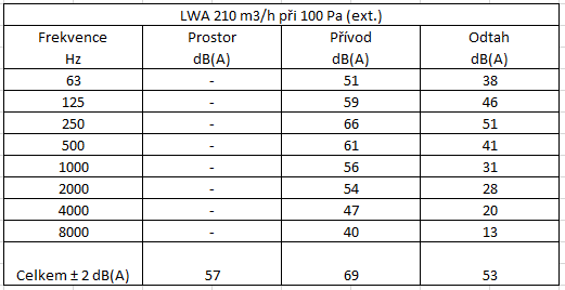 Zvuková data platí pro qv = 210 m3/h, Pt ext = 100 Pa.