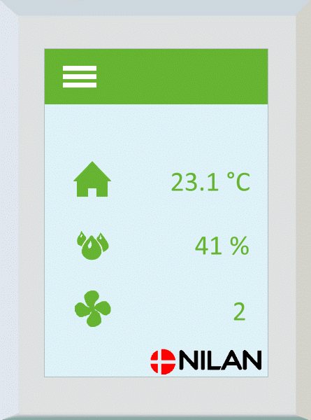 Na základní obrazovce je zobrazována aktuální teplota v interiéru. Teplota může být snímána čidlem čidlem v odtahu nebo externím čidlem (T10). Dotykem na aktuální teplotu se aktivuje menu Nastavení teploty, kde lze zvolit požadovanou teplotu interiéru. Jednotka na požadavek bude reagovat dle svých technických možností. Pasivní jednotky mohou částečně teplotu ovlivnit teplotu pomocí by-passové klapky. V případě, že jsou vybaveny dohřevem, ovlivní toto nastavení i ke spínání dohřevu vzduchu. Jednotky s aktivní rekuperací dokáží chladit nebo dohřívat přívodní vzduch a nastavení interiérové teploty je určující pro spínání kompresoru (topení /chlazení). Nastavení požadované teploty je po 0,5 °C, potvrzení volby se provádí pomocí dotyku zatržítka v kroužku.